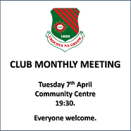 Monthly Club MeetingDate: 7th AprilTime: 19:30Venue: Community Centre